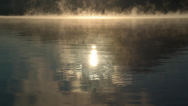Sun Glint on Lake in Morning Mist