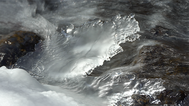 Transformed as snow, ice, and mist, water interacts with midwinter light and wind to physically embody the rhythms of life.