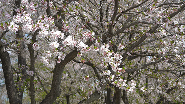 The color of the sea is cousin to that of the sky. With spring’s arrival, the violent sea calms, and winter’s leaden sea and sky turn deep Sea of Japan blue.