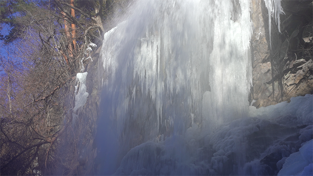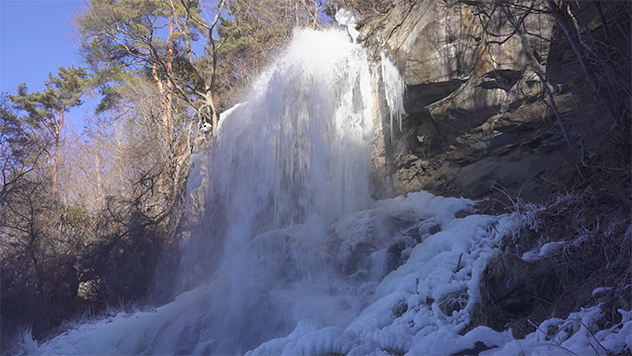 厳冬の滝は、凛とした神秘的な波動を発しています。